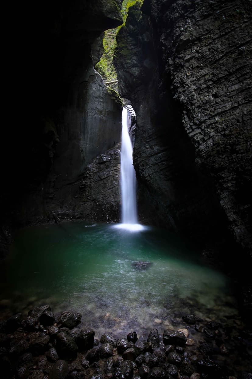 A classic, well-marked mountain hike leading from the Kamniška Bistrica valley up to the spectacular saddle Kamniško sedlo and Kamniška koča. The trail starts on a short stretch of road, then quickly turns onto a steep forest path, including a memorable section beneath overhanging cliffs. After passing a cargo cableway area and a few short road/cart-track links, the route keeps climbing through the woods on a steady, well-trodden path.