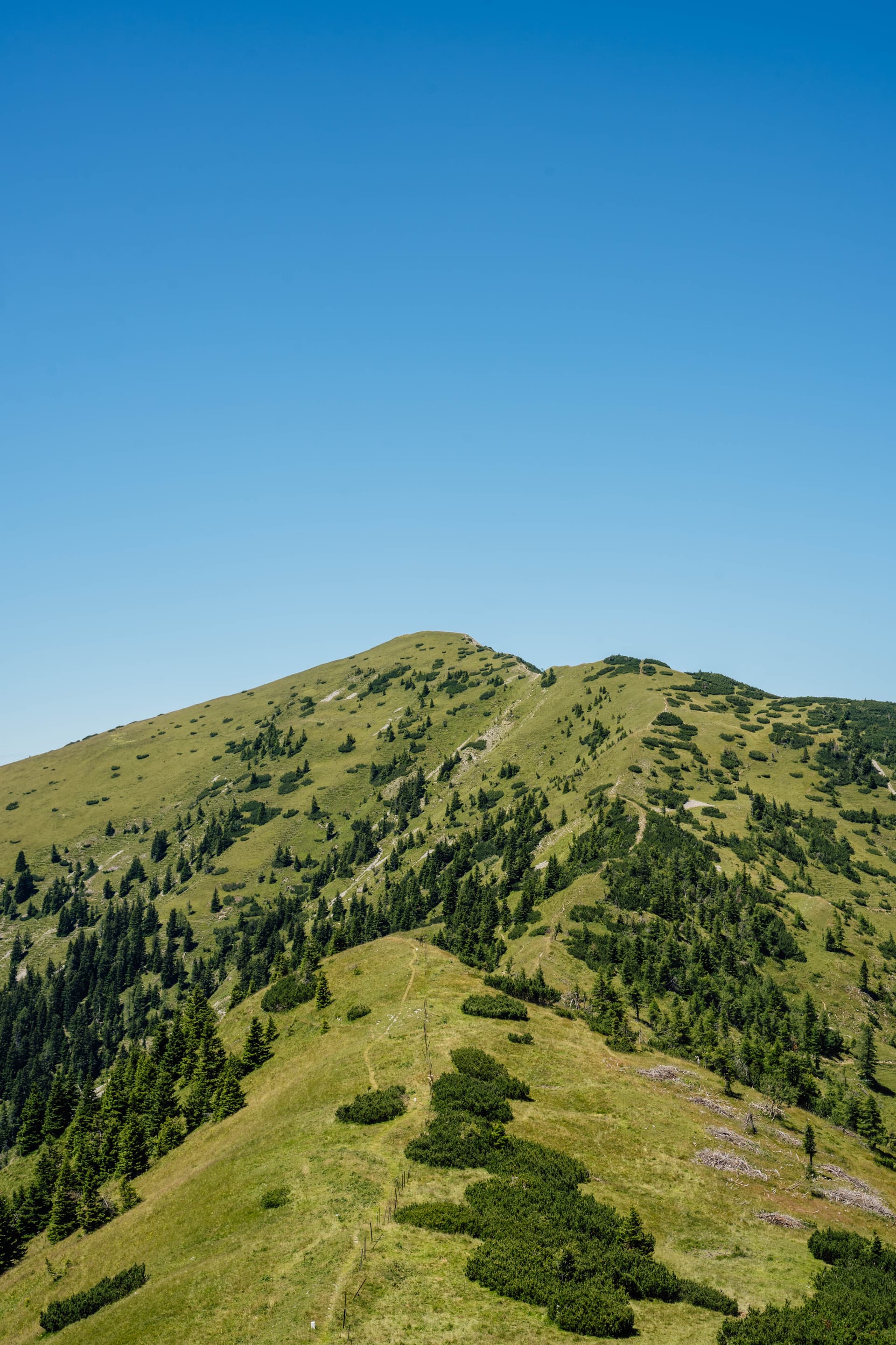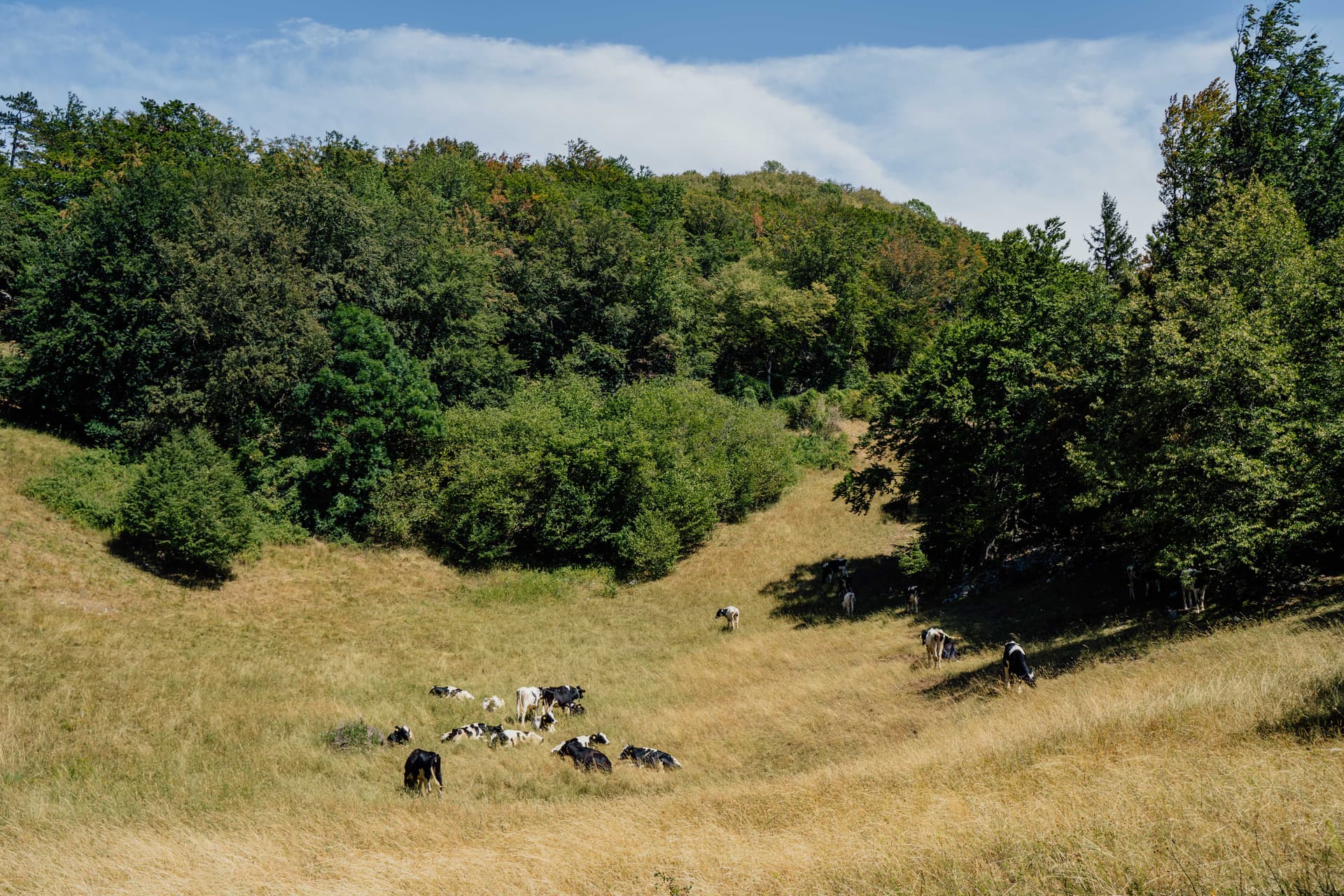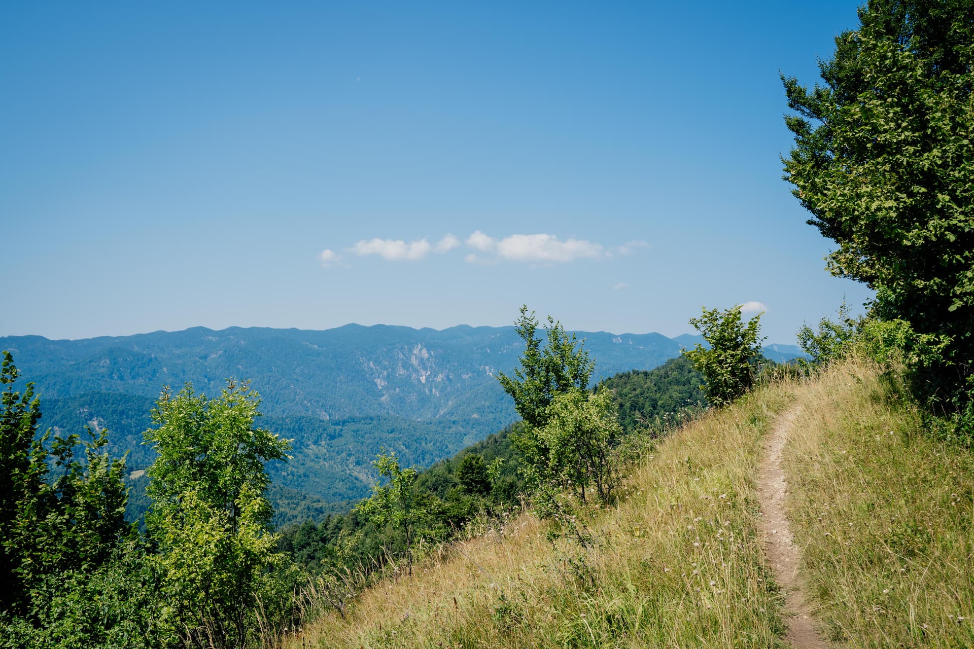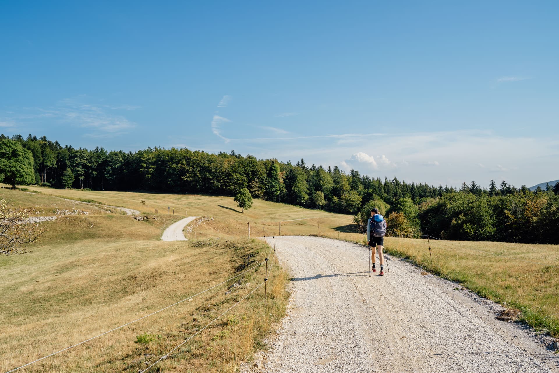 Een lange overgang naar rustiger terrein: meer glooiende heuvels, beboste plateau's en een gelijkmatigere wandelcadans na de alpine kern. Het is meestal eenvoudig onder de voeten, maar de dagen kunnen zich uitstrekken, en dit was waar ik meer begon na te denken over hitte, timing en eenvoudige efficiëntie dan over “bergdramatiek.”